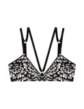 Warning: this bra contains images that are graphic in nature. Viewer discretion is advised. Aside from the feather inspired graphic print on this funky triangle bra, we're really digging the strappy detailing at the neck, the side boning for structure and the comfy bamboo fabric with a hint of stretch. Add an optic black and white organic pattern and we're hooked on this edgy set. Wear it with the Pam hipster for an eye-popping effect.