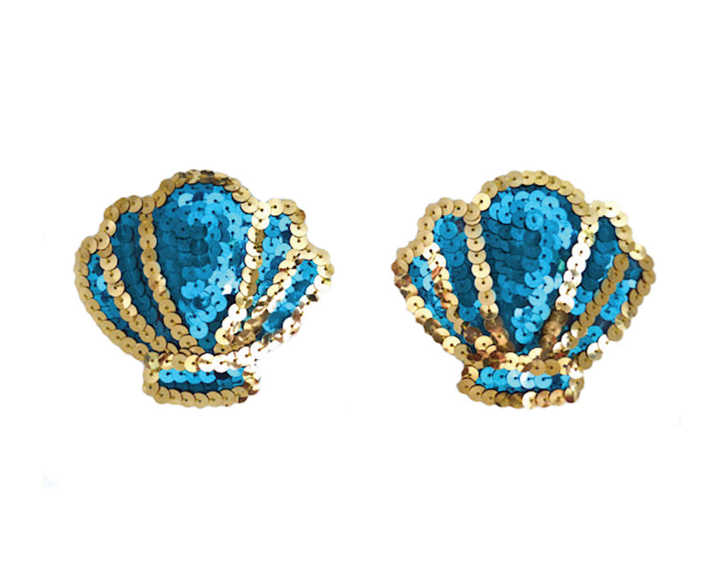 She sells seashell pasties by the seashore and you should pick up a pair because they're awesome! Turquoise and gold sequins cover these reusable shell pasties for an etherial look that would make Ariel herself jealous. Backed in soft felt, simply adhere them to the body with strips of double sided tape (included) or pastie glue and enjoy!