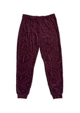 Who doesn't love red velvet? Just like the cake these lounge pants are rich, luxurious and delectable. Geometric velvet shapes cut across soft mesh creating a sensual effect against the skin.With a wide waistband and cuffs, this soft cozy jogger is perfect for snuggling up alongside that special someone. Wear it with the Cut Velour Bralette for a loungewear look that's irresistible.