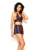 If you missed the rainbow connection before, you're sure to catch it here. This super soft mini boxer has an adjustable drawstring in front and elastic in back for a retro look, while the rainbow stripes bring these shorts into modern day. Side vents at the leg help enhance this comfortable yet playful short. Wear it with the Riley Bralette for a colorful take on pin up fashion.