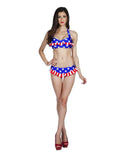 Does your heart beat true for the red, white and blue? It will for this star spangled hipster with skirted striped ruffle around the bottom. Fully lined with slight rushing in the back, you'll feel like a patriotic princess in this little number. Wear it with the Grace Swim Top for the maximum effect.