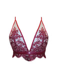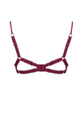 Leather + lace = damn good taste! The enchanting Zerena triangle bra is something to behold with its deep red hue and seductive styling. Mesh cups are adorned with ornate embroidery and topped off with dainty satin trim. The leather waistband pulls the look together alongside a feminine scalloped lace trim, while the adjustable back elastics help this bra fit an array of sizes. Wear it with the Zerena High Waisted Brief for that truly luxe feel.