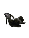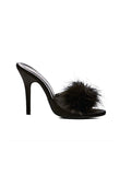 Marabou looks good on you! Your feet will thank you for glamming them up in these sky high slippers. Black marabou feathers grace the satin tops of these 4" stilettos with ribbed soles. Amazing for lounging at home like a vintage Hollywood starlet or for strutting your stuff out and about.
