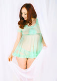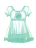 This saccharine set is giving us a toothache! Retro and sweet, this chiffon babydoll is sheer, ruched and ruffled with marabou pom poms to boot. The flirty frills will have you feeling as feminine as can be with puff sleeves, an empire waist and satin bow. The matching ruffled hipster ties the look together and is sure to give you a major sugar high.