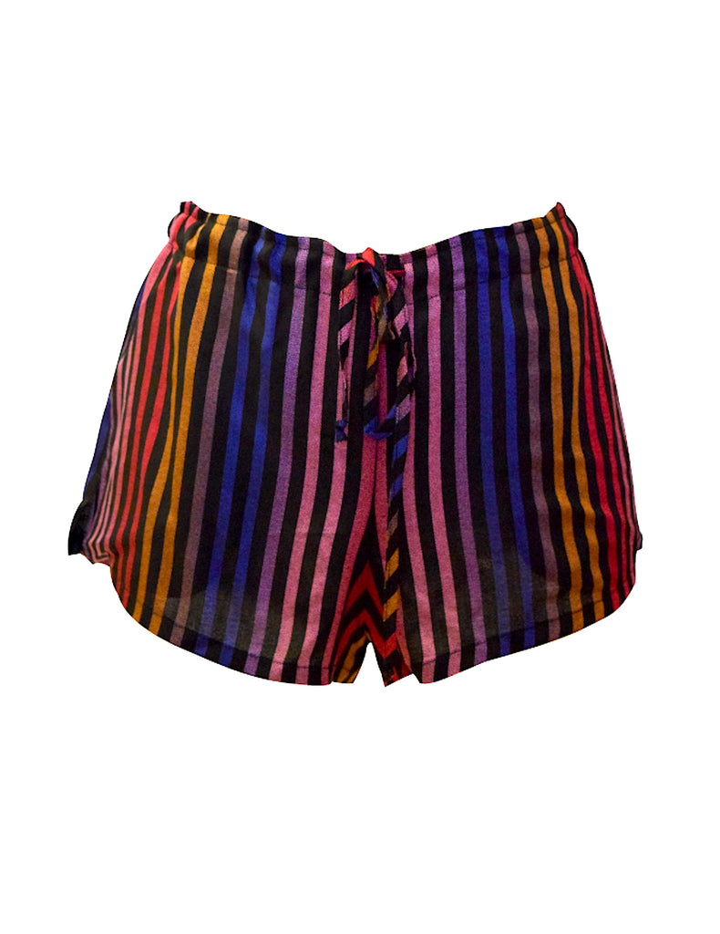 If you missed the rainbow connection before, you're sure to catch it here. This super soft mini boxer has an adjustable drawstring in front and elastic in back for a retro look, while the rainbow stripes bring these shorts into modern day. Side vents at the leg help enhance this comfortable yet playful short. Wear it with the Riley Bralette for a colorful take on pin up fashion.