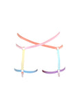 Somewhere over the pastel rainbow, dreams come true. And those dreams take the form of this pretty little garter belt, giving the bondage look a softer edge with girly colors and functional clasps. Just match it with your favorite feminine frocks and let yourself get whisked away to dreamland.