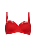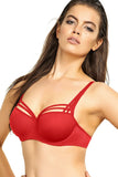 Red is one of the most sensual colors a woman can wear. Make them beg for more with this t-shirt bra complete with caged strappy detailing to create a play of skin at your décolletage. This comfortable padded bra with molded cups was designed to take the everyday t-shirt bra and pump it up a notch with strapping detail you'll want to show off under a low cut shirt. It features adjustable straps in back along with power mesh and underwire for great support.