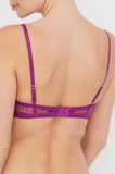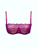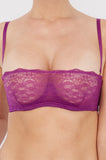 Are you ready to preside over your purple reign? Take charge in this lace bandeau with hidden underwire and pretty scalloped edges. Strapless, cross backed or regular, this delicate bra also has golden hardware to add to its lux status. Wear it with the Tentation Tanga and prepare to claim your throne.