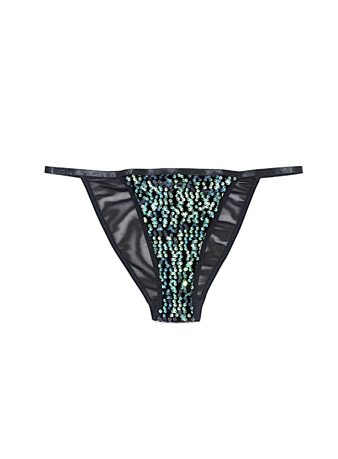 Major mermaid vibes! This ethereal string bikini is covered in sparkly iridescent sequins that can look green or blue depending on how they catch the light. Elegant yet simple, this tanga also has a soft mesh lining inside comfort. Talk about making waves, this piece was mer-made for you to steal the show! Wear it with the Carmella Sequin Bra for an effortlessly enchanting look.