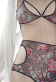 Feeling burned out? Not as burned out as this pretty brief we bet! The fun, colorful floral has been "burned" away to reveal a background of sexy black mesh - these ain't your granny's pantie. Add some sexy side cut outs and you've got a recipe for success. Match it with the Cassia triangle bra for a burning hot look.