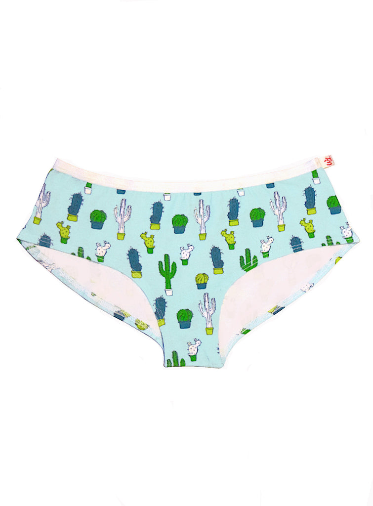 Things that are a pain in the ass: Mondays, traffic and household chores. Things that are not: quirky underwear with cactuses printed on them. These comfy stretch cotton hipsters feature different varieties of green cacti on a sky blue background for those who have a green thumb or just like to think they do. Soft, comfy and prick-free, these undies will have you looking sharp in no time.