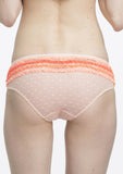 Be a peach and check out these adorable hipsters with tonal lace ruffles! The dotted mesh fabric adds a quirky feel to these sherbert-colored undies while the lace trim is slightly ruffled to look like mini bloomers. Feminine and flirty, these hipsters will surely add a ray of sunshine to your day.