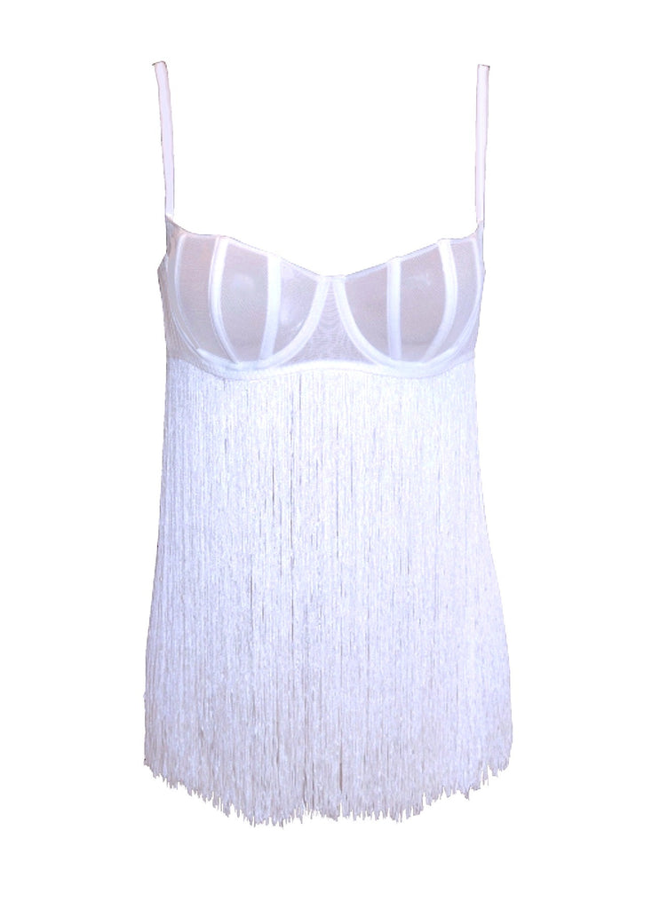 Fabric: Mesh: 87% nylon 13% elastane, Fringe: 100% polyester
